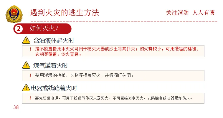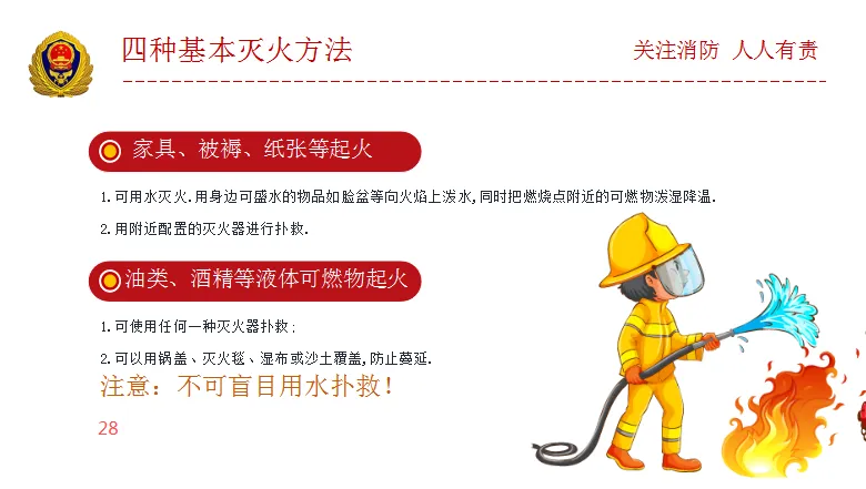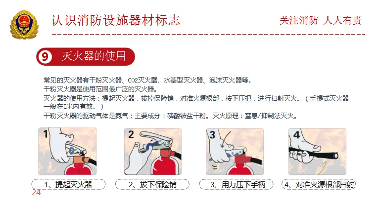 当你遇到火灾时要在懂得相关灭火知识的前提下,立即利用就近的灭火器材进行扑救;