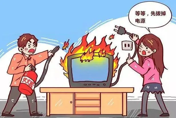 电器或线路着火时:要先切断电源,再用干粉或气体灭火器灭火,不可直接泼水灭火,以防触电或电器爆炸伤人。