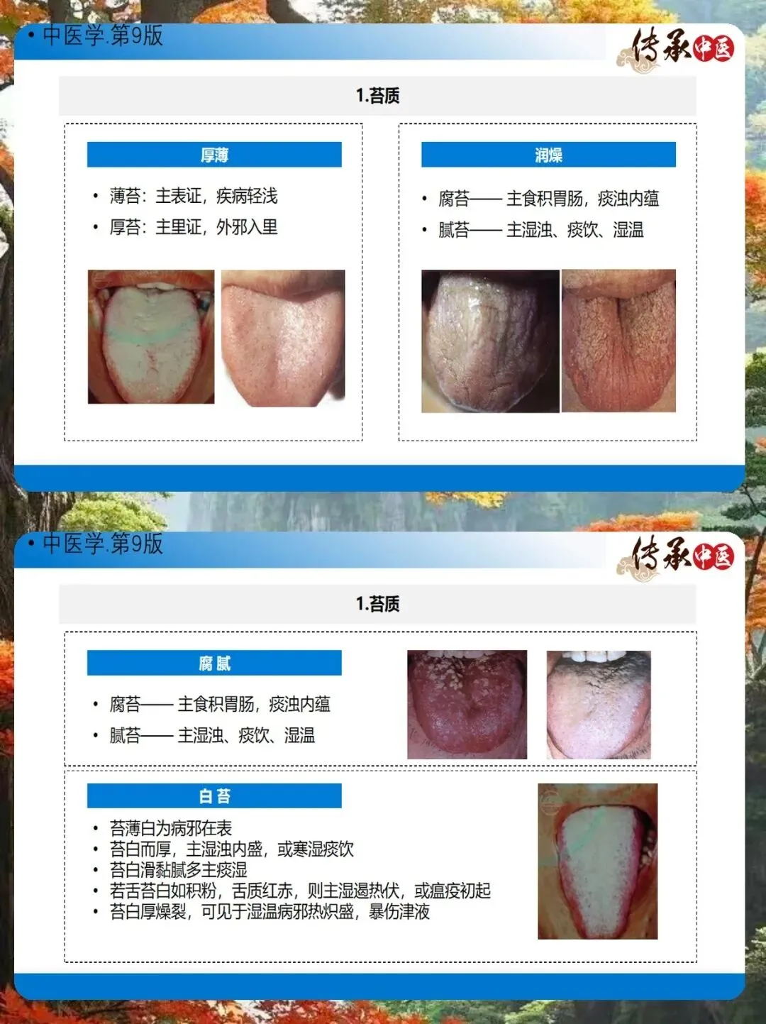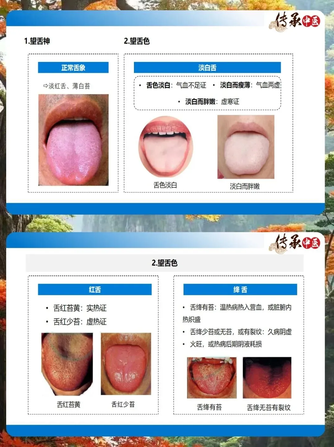 舌质反映脏腑的虚实。淡白舌多是气血不足或虚寒;红舌、绛舌则是热证,红绛无苔往往是阴虚火旺;青紫舌则提示有瘀血。舌形上,胖大舌有齿痕,多是脾虚湿盛;瘦薄舌则是气血两虚。舌苔则反映病邪的深浅。薄白苔是正常的,或者病邪在表;厚苔说明病邪入里。白苔主寒,黄苔主热。如果舌苔由白转黄再转灰黑,说明病情在加重。