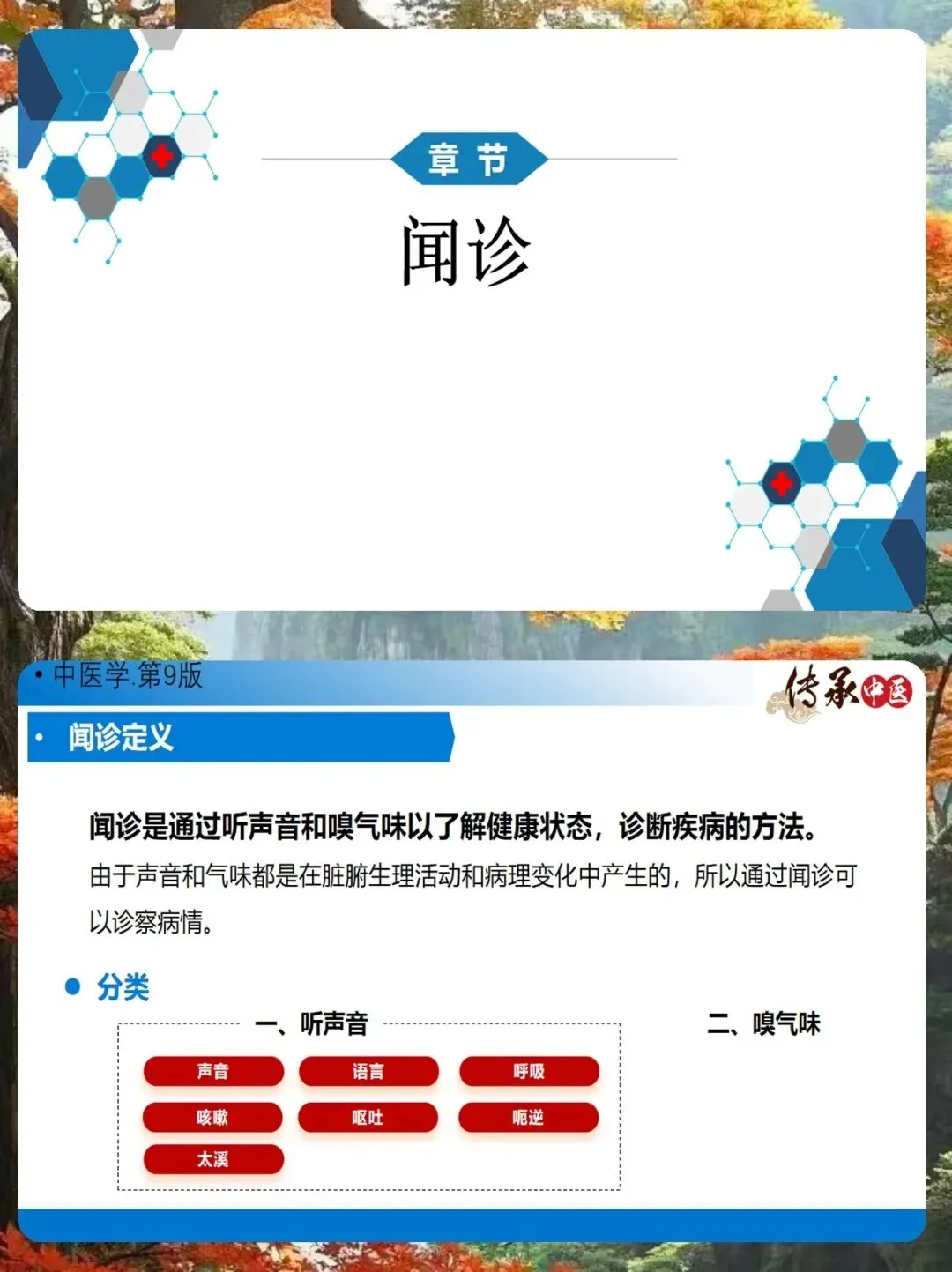 接下来是第二诊——闻诊。这包括听声音和嗅气味。听声音,声音高亢洪亮多为实证、热证;声音低微无力则是虚证、寒证。嗅气味,口气酸臭、大便臭秽多是实热或食积;而身体有腥臭味或小便清长无味,则多属虚寒。