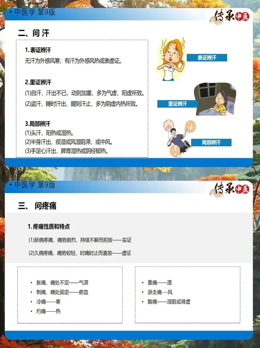 第三诊是问诊。这是医生与患者的直接沟通,最著名的总结就是《十问歌》。一问寒热,二问汗,三问头身,四问二便。这里有几个实用的经验点:问寒热,要分清是恶寒(怕冷加衣被不减,多是表证)还是畏寒(加衣被能缓解,多是里虚);问出汗,白天动则汗出是气虚自汗,睡着出汗醒来即止是阴虚盗汗;问二便,大便酸臭是食积,黎明前腹泻多是肾阳虚。