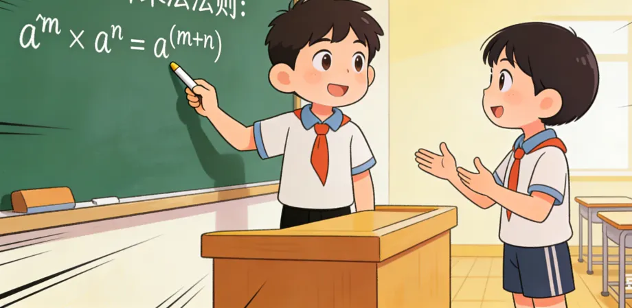 课堂伊始,我先引导学生回顾上节课所学的同底数幂乘法法则。有两名学生主动上台讲解——一位负责板书符号语言,另一位负责口头阐述法则。讲解结束后,我问台下同学有没有什么问题,大家都表示没有。于是我主动抛出问题:“在运用这个法则计算时,有什么需要特别注意的地方吗?”台上的两位学生稍作思索,随即指出了两点:一是法则中的指数指正整数,二是当式子中出现负号时,计算要格外留意符号的变化。这个回答让我既惊喜又意外。借此机会,我也鼓励台下的学生:希望在后面的环节中,大家也能提出这样“有价值”的问题。