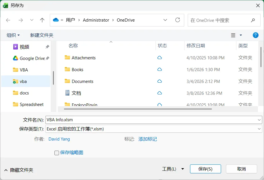 - ActiveWorkbook.SaveAs 表示将当前文件另存为指定目录中的文件。ActiveWorkbook 表示 Excel 中当前打开的工作簿对象,这个对象有个 SaveAs 方法,用来保存 Excel 的当前工作簿。SaveAs 方法需要几个参数: