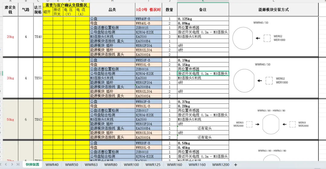 一键筛选匹配:输入负载能力(如 50kg)、接口类型(如 ISO 标准)、安装方式(如法兰式),表格自动筛选出符合要求的快换装置型号;
