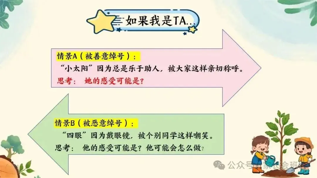 【通用】心理、尊重与理解、人际交往班会ppt:绰号大家谈.(含视频、教案、讲稿)