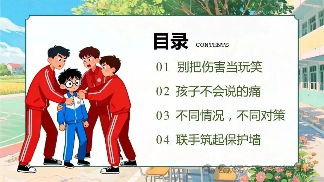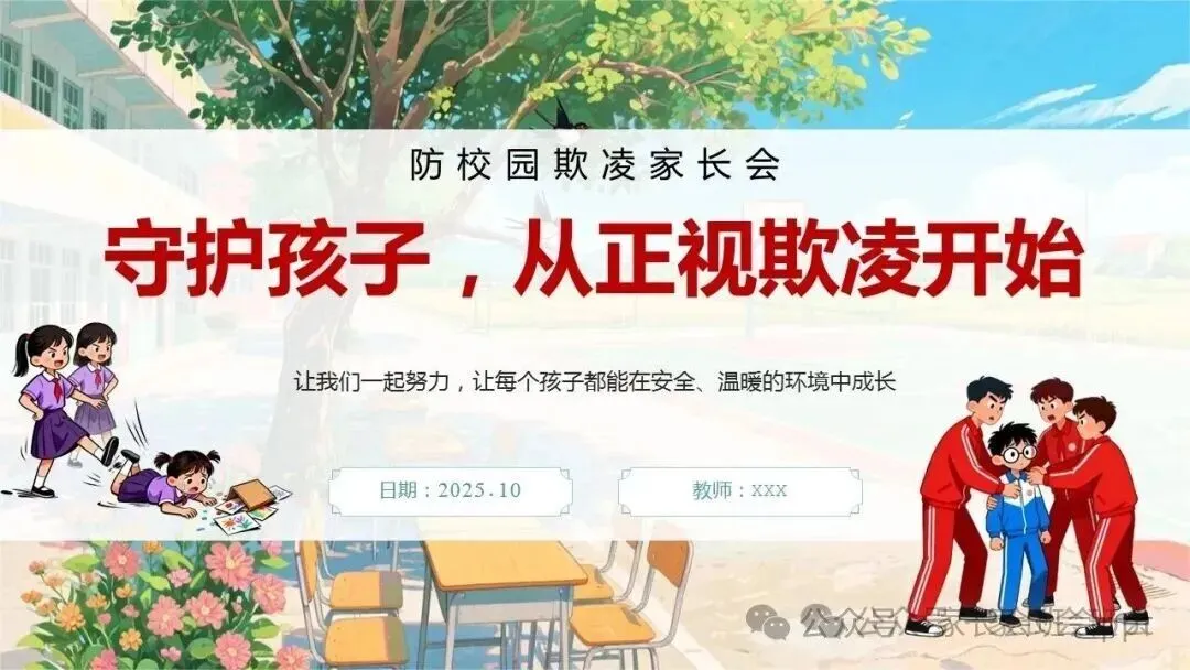 >防欺凌+护童心家长会ppt(通用版):守护孩子,从正视欺凌开始.含发言稿