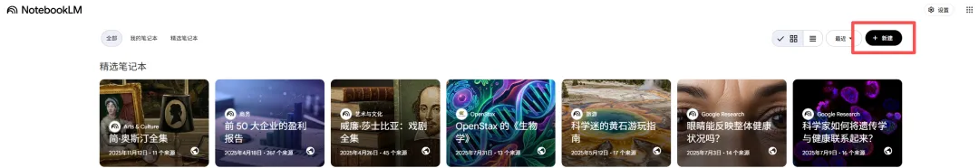 进入后,就可以在右上角点击新建按钮直接创建新的笔记本: