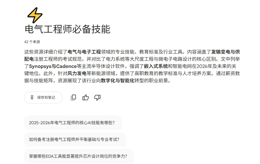 每一条输出的最后,都有保存到笔记的按钮。我们可以把认可的内容保存到笔记本,哪些没有什么意义或者回答不满意的内容,可以不管它。
