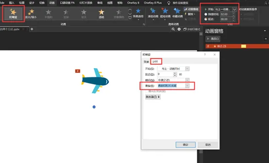 开始为与上一动画同时,持续时间2秒,无延迟,如果需要持续不停的转动,可以在动画窗格中双击后,在计时中将重复改为“直到幻灯片末尾”。