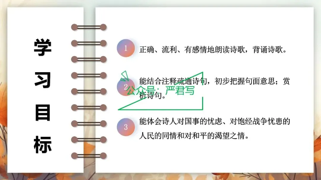 七上课外古诗词诵读:秋词 夜雨寄北 十一月四日风雨大作 潼关 30张PPT含音频