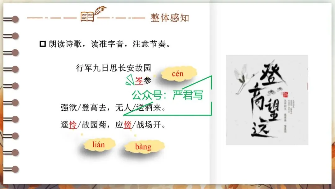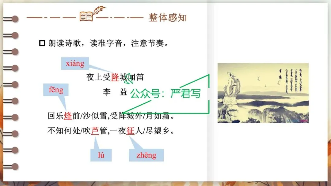 七上课外古诗词诵读:峨眉山月歌 江南逢李龟年 行军九日思长安故园 夜上受降城闻笛