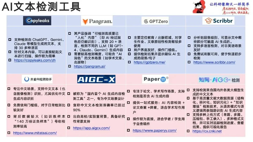 - Pangram 特点:其产品强调“可检测高质量已“人化”内容”(即AI经过润色后仍能识别)。 功能:支持20+语言检测不同的LLM(如GPT-4、Claude、Gemini)生成内容。 链接:https://pangram.ai/