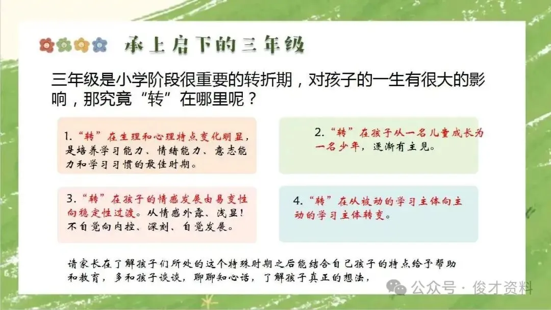 >三年级语文下开学家长会ppt:三年级有点苦,但我们在一起有点甜.含发言稿