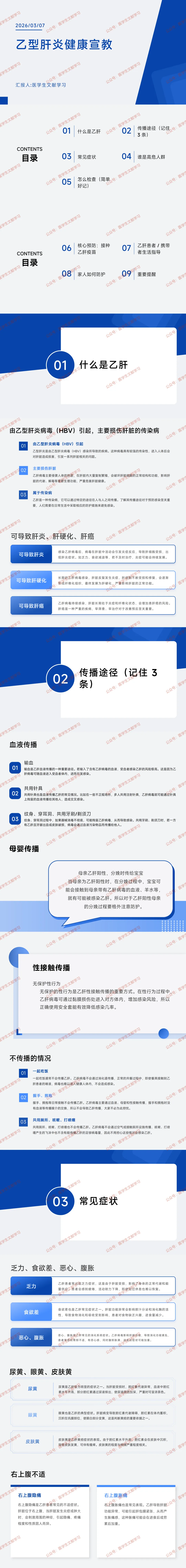 - 乙肝并非不治之症,可防、可控、可治:接种疫苗是核心预防手段,规范生活和治疗能有效控制病情,早诊早治可实现良好预后。