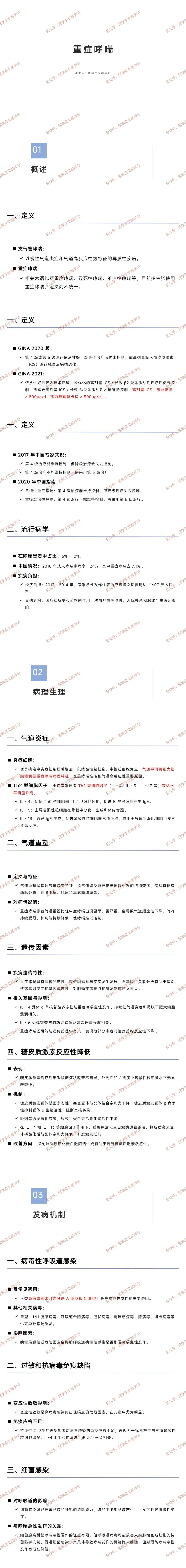 - 本质:以慢性气道炎症和高反应性为特征的异质性疾病,重症型需满足 “高剂量治疗仍未控制” 或 “降级治疗即失控”。