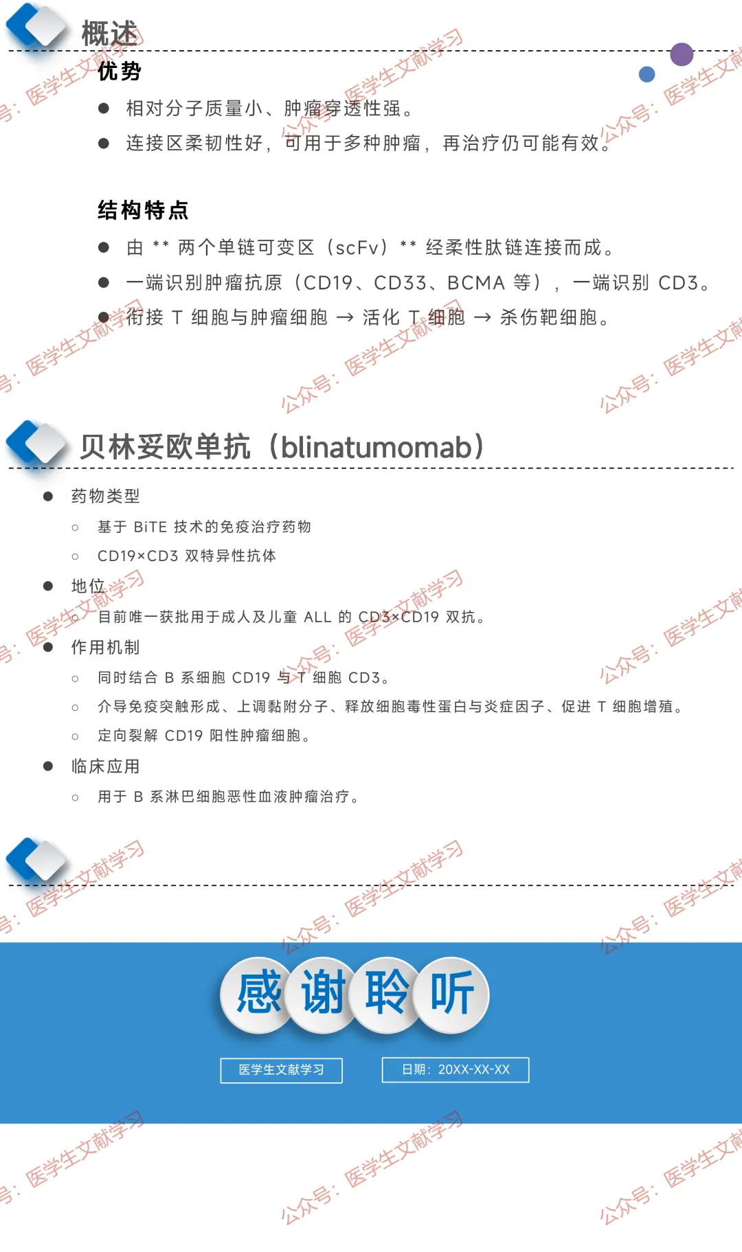 - 结构:两个单链可变区经柔性肽链连接,一端结合肿瘤抗原、一端结合 T 细胞 CD3