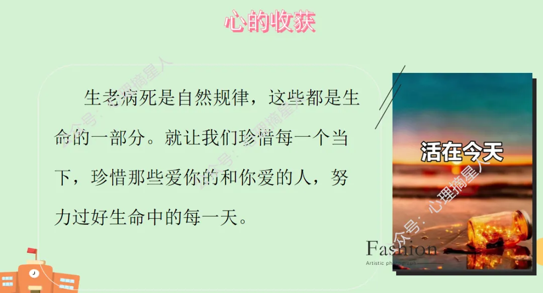 4.学会表达和应对死亡分离时的情绪,接纳生命的离去,学会珍惜当下。
