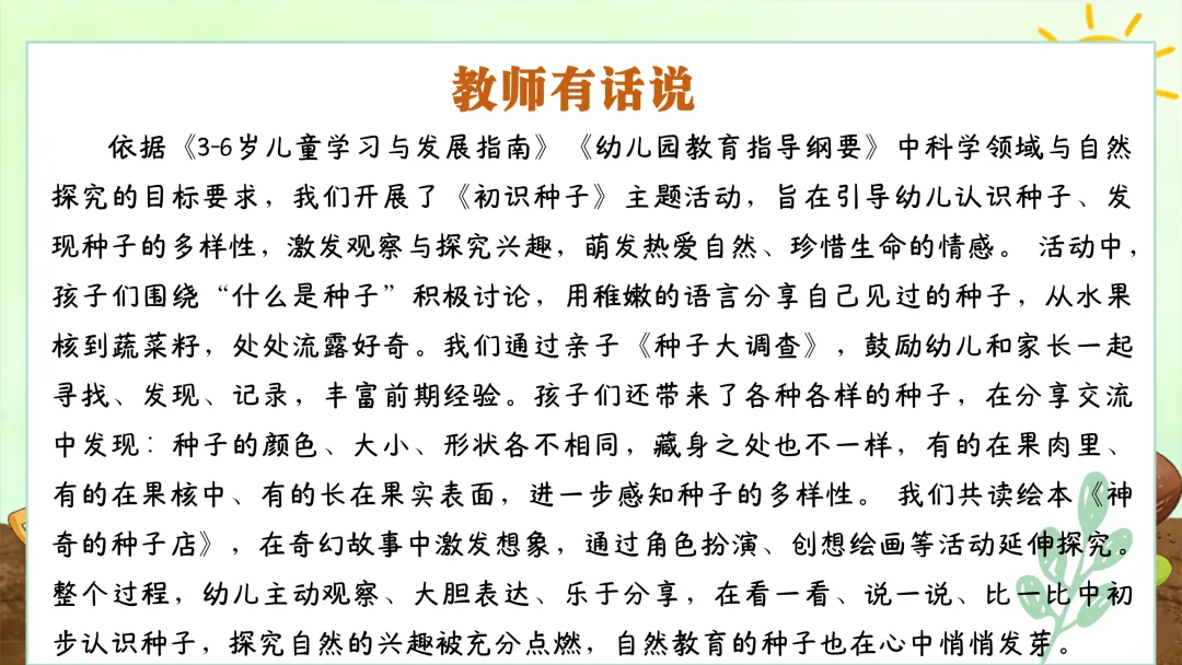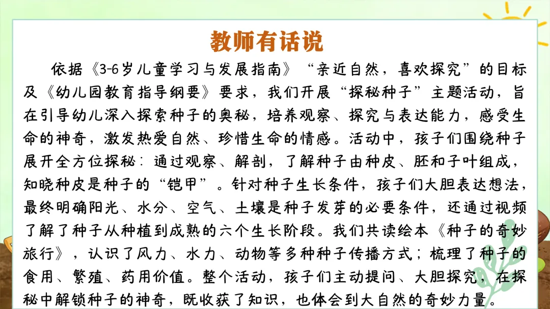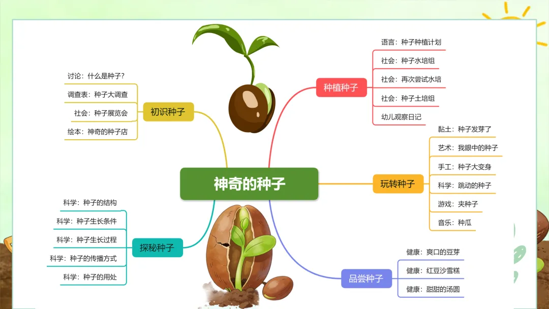 幼儿园班本课程故事《幼探春天》PPT56页+教案+原文稿+调查表+思维导图