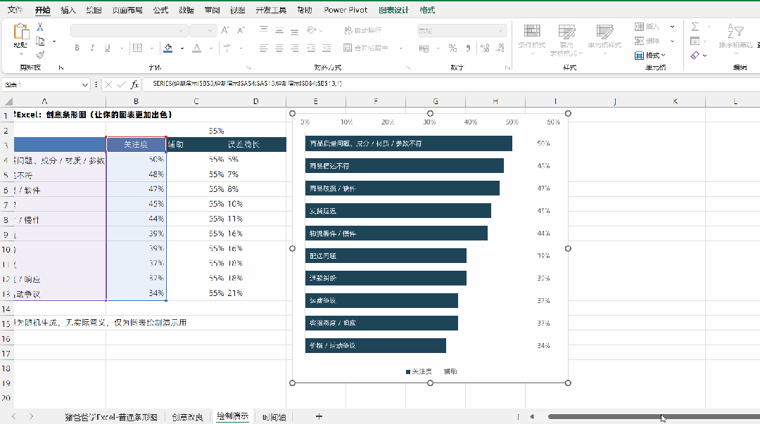 猪爸爸学Excel标准/基础图表-条形图这样绘制,更加创意专业,大家都说好