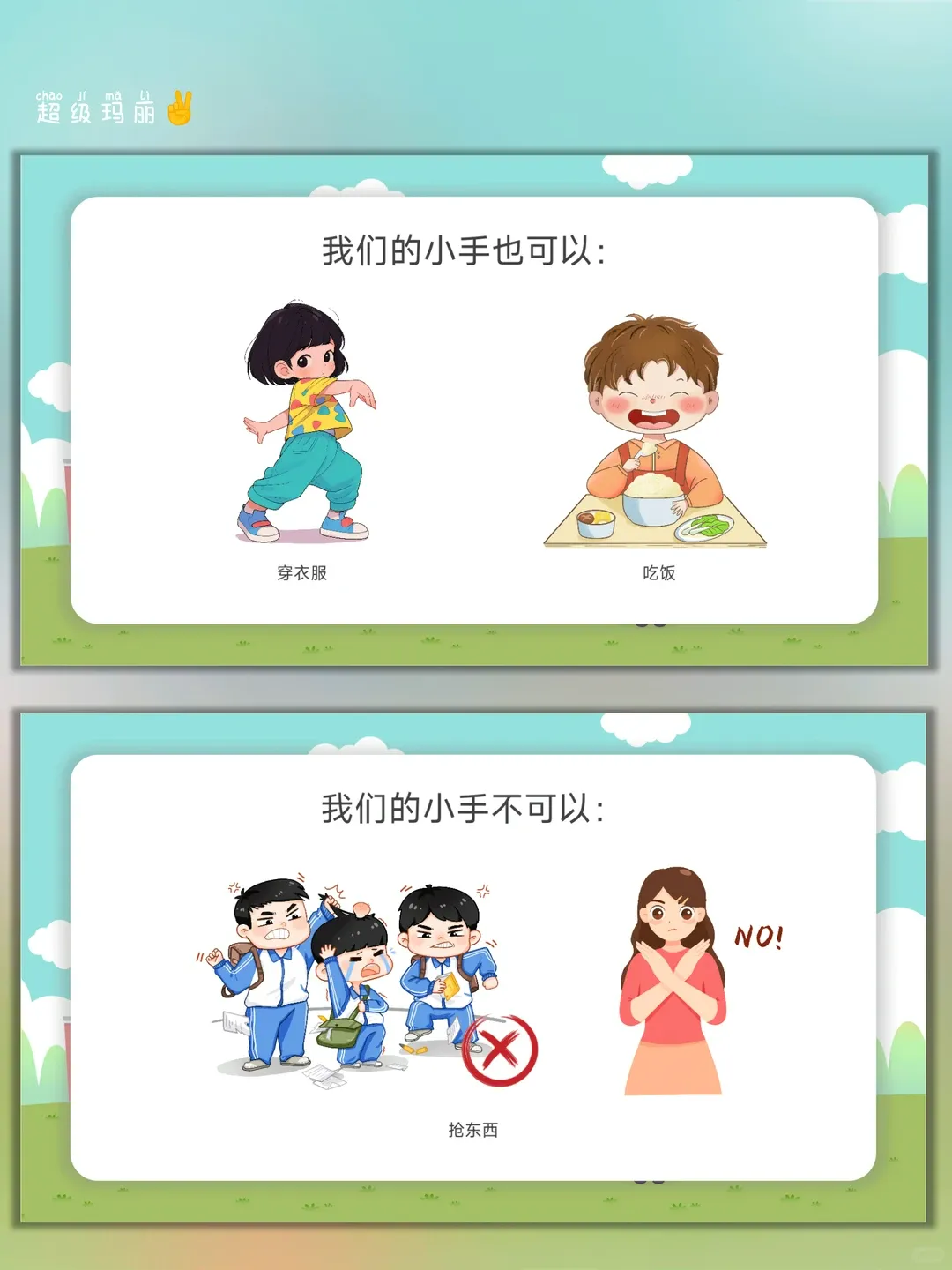 1. 认知目标:引导幼儿认识小手的多种积极用途,明确小手不能用于打人、抢东西等暴力行为。