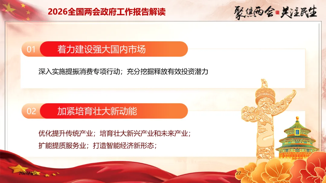 >聚焦两会关注民生PPT《数字解读2026年两会政府工作报告》