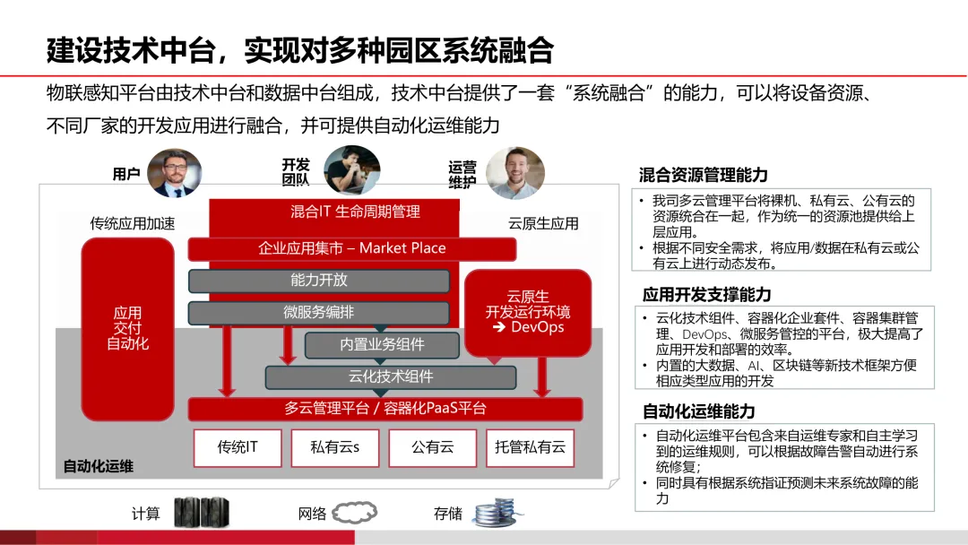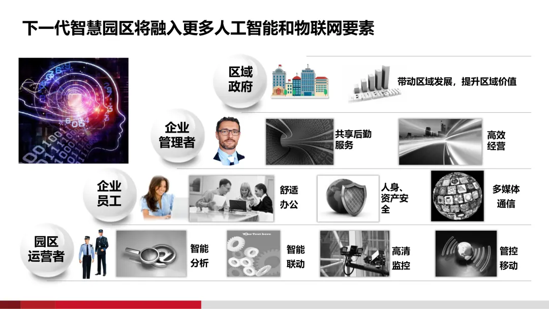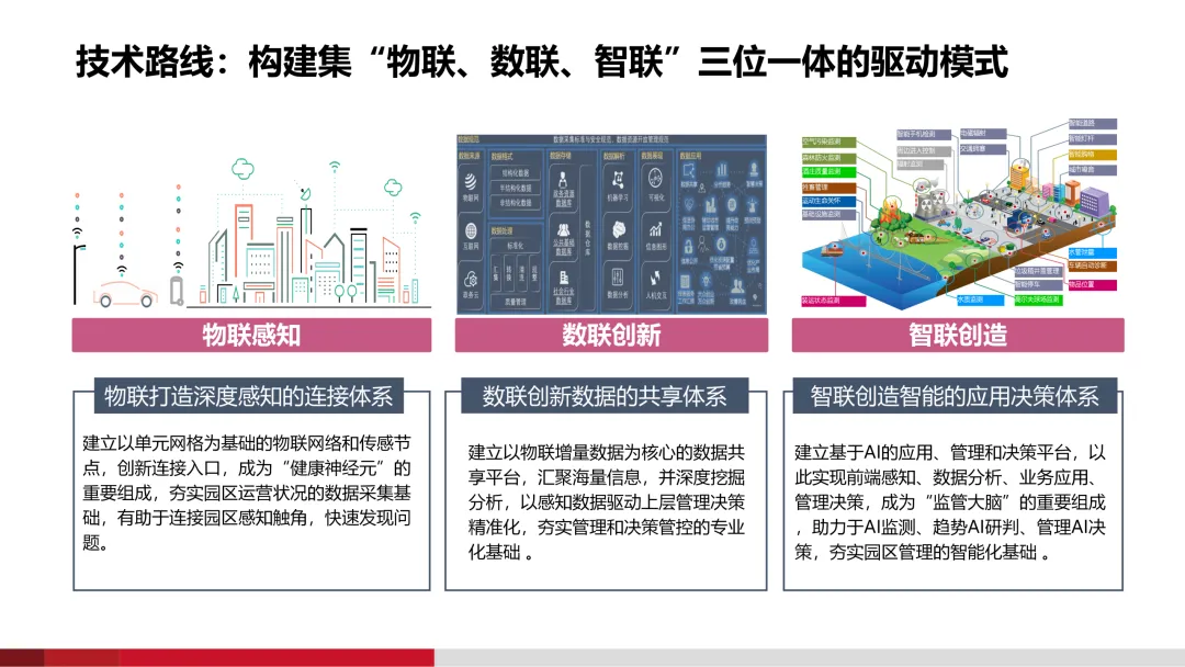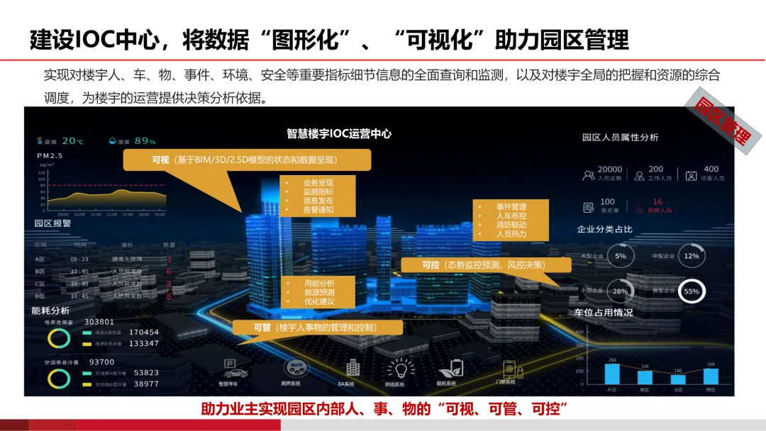 在具体实施上,方案涵盖了园区管理的各个方面,包括安防管理、环境管理、车辆管理、物业服务、电商服务、市场管理、仓配管理等。通过引入智能视频监控、智能停车、智能安防、智能能耗监测等系统,实现园区运营管理的全面智能化。同时,方案还注重系统的整合与协同,通过统一的数据标准、接口规范和平台架构,实现各系统之间的无缝对接和数据共享。