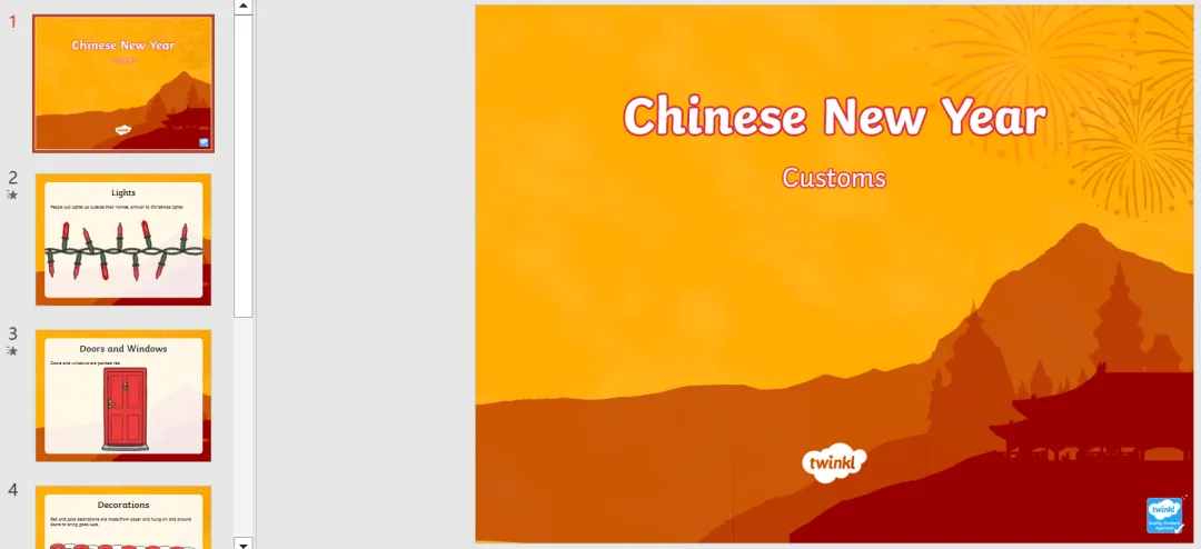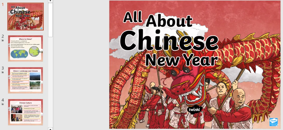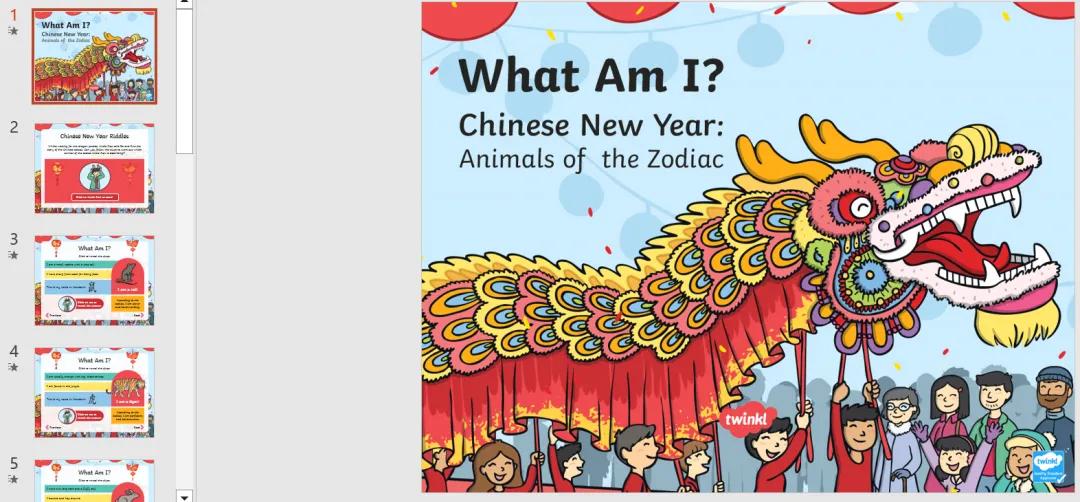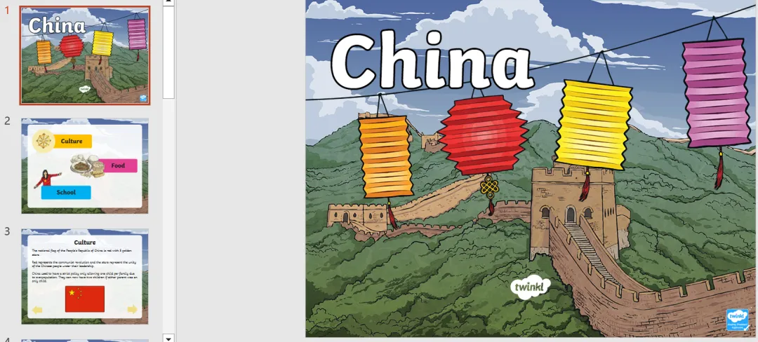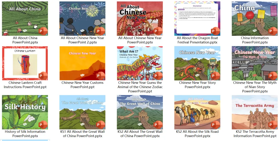 今天安安妈带来一套全英文PPT,介绍中国传统文化、节日、历史等,共16个PPT,包含新年、端午、十二生肖、秦始皇、长城、丝绸之路等文化习俗。