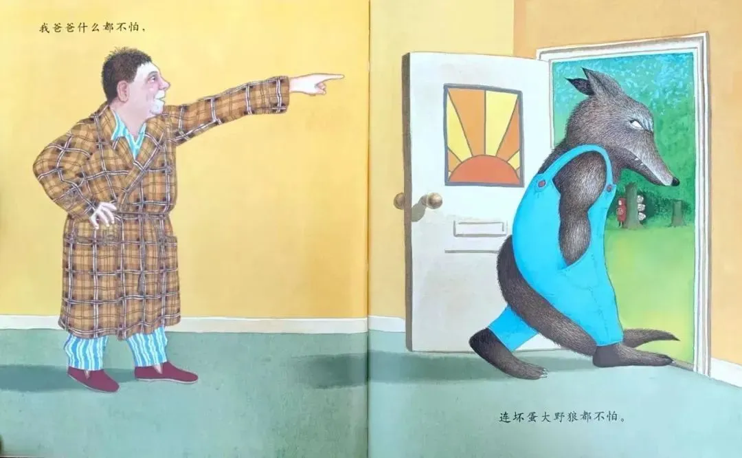 我爸爸什么都不怕,连坏蛋大灰狼都不怕。