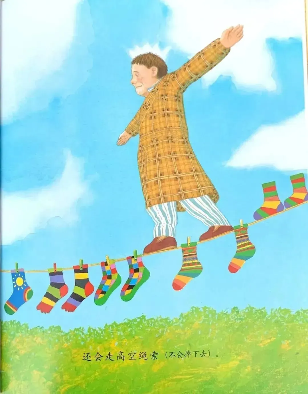 还会走高空绳索(不会掉下来)。