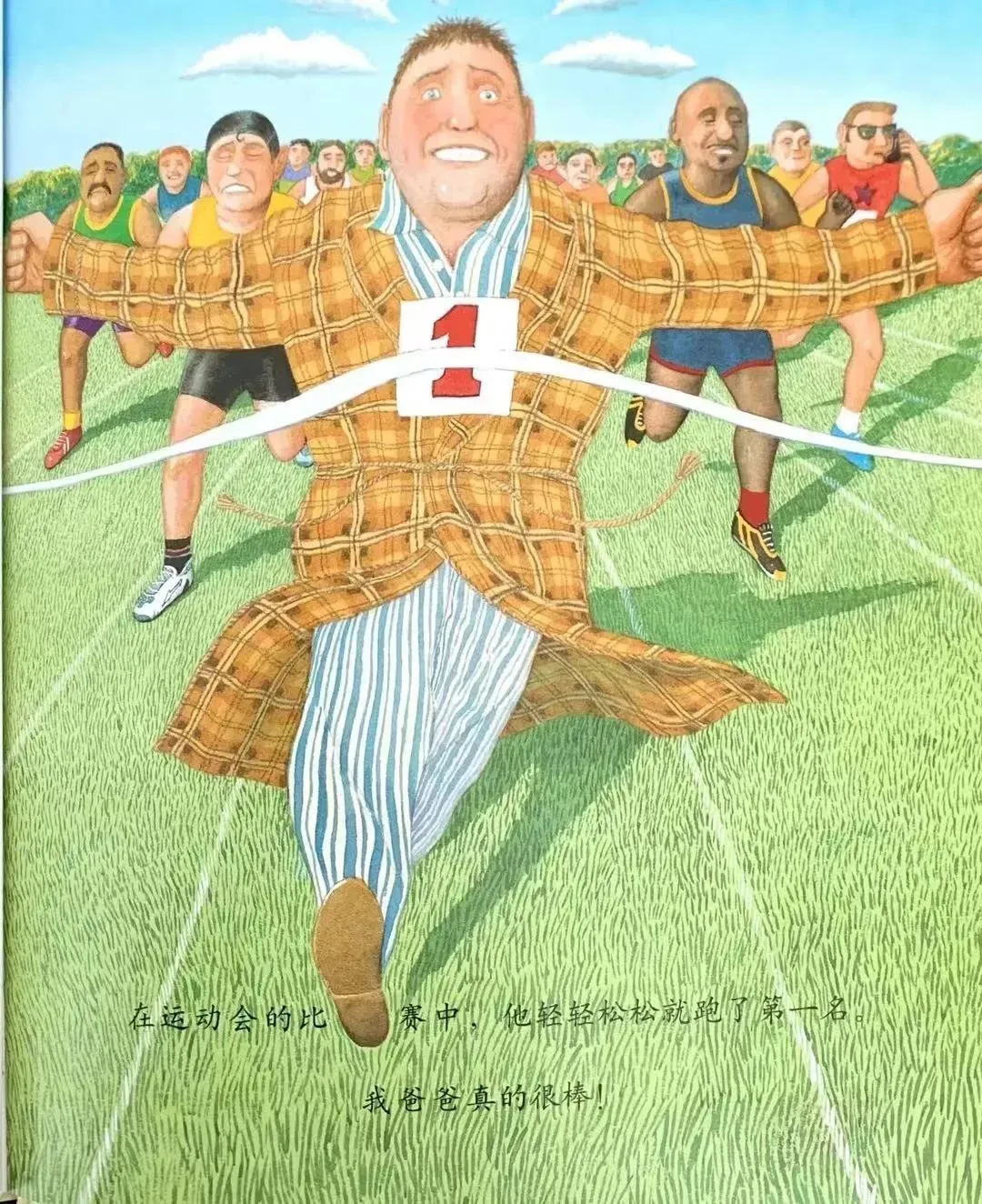 在运动会的比赛中,他轻轻松松就跑了第一名,我爸爸真的很棒!