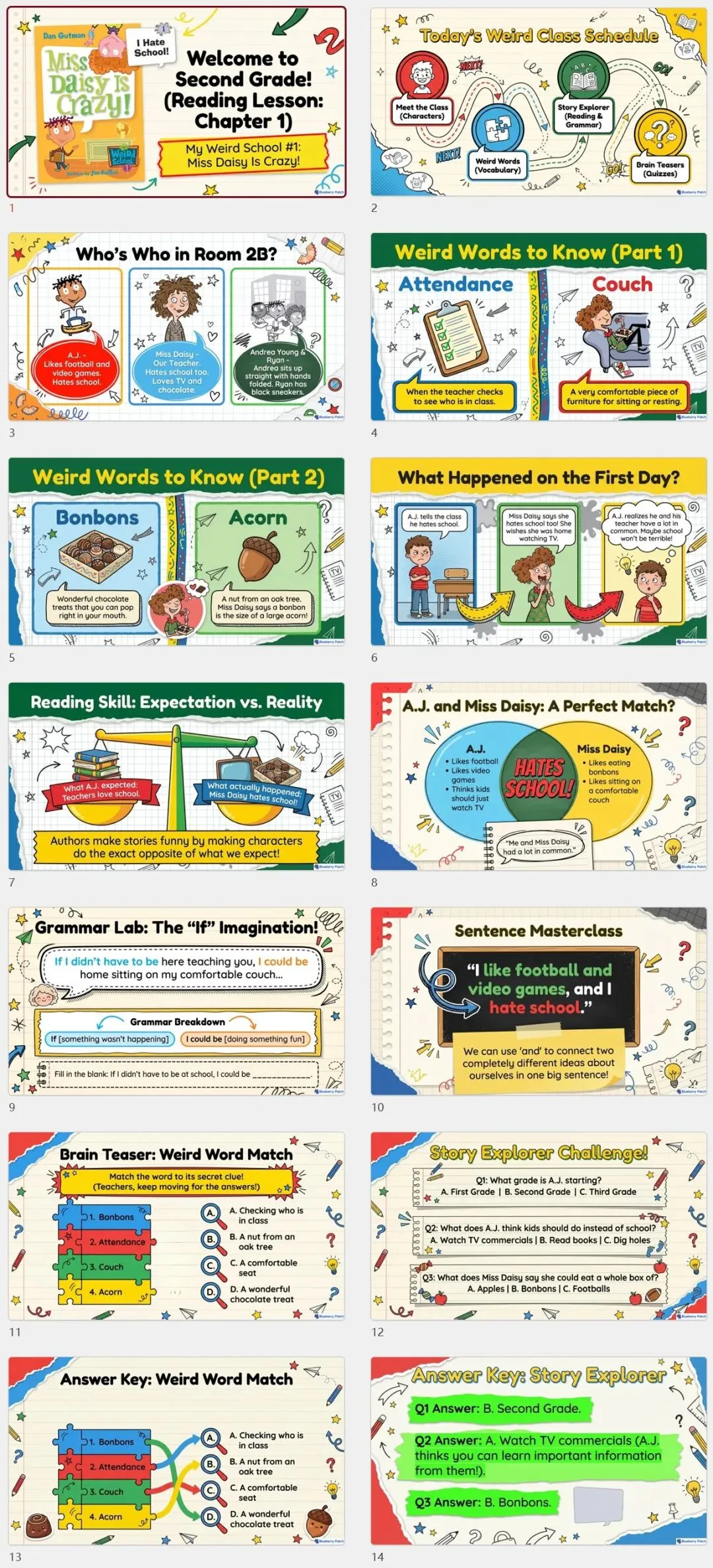 每章一个PPT+含2本书(1.Dan Gutman Miss Daisy is Crazy! 2.Dan Gutman Mr. Klutz is Nuts!) 共24个PPT。【领取方式】