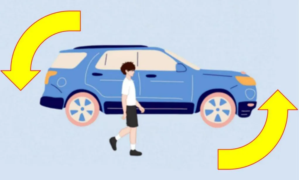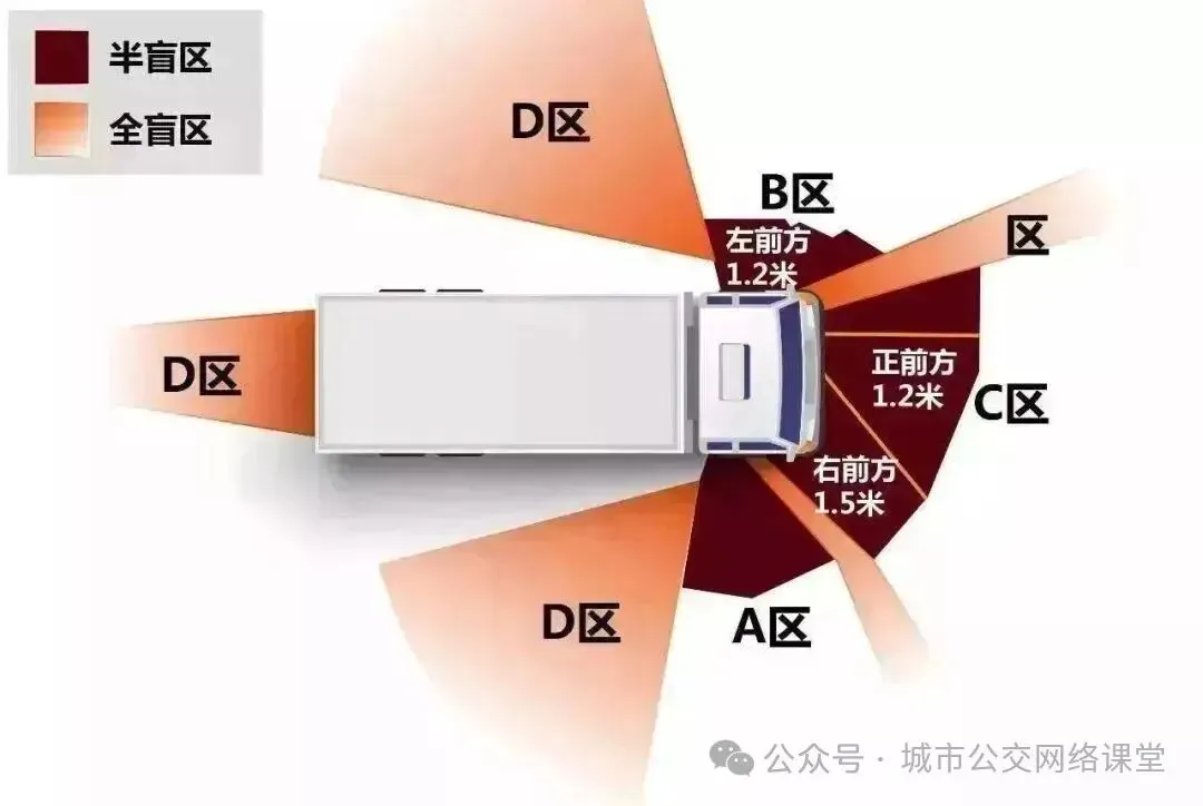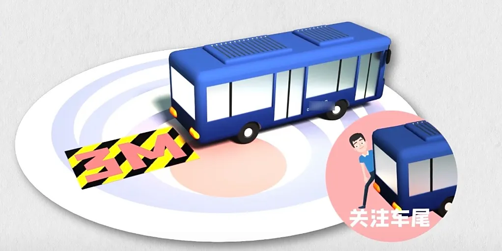 3、不在大型车辆车尾、车前等各盲区逗留。
