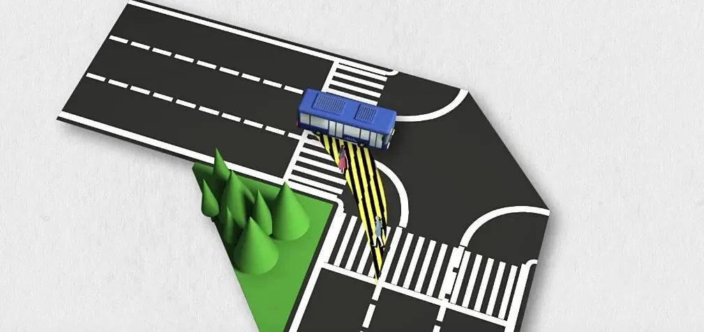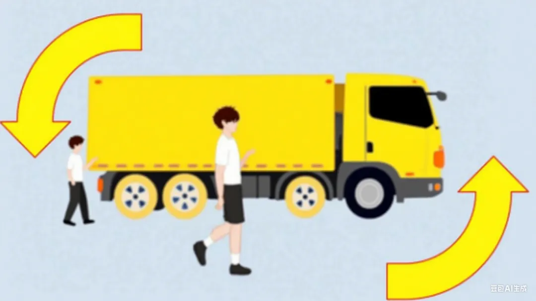 2、注意大型车辆内轮差,大型车辆转弯时切勿靠近。当大型车辆即将转弯时,需与其保持2米以上的距离。