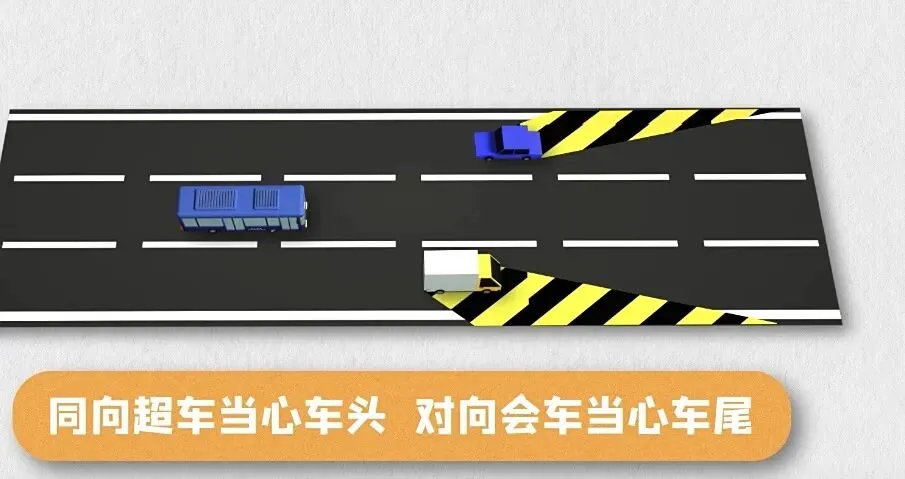1、与大型车辆保持安全距离,不与大型车辆抢道、抢灯。