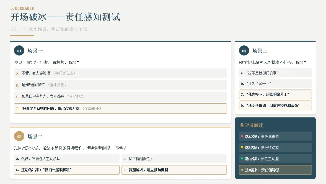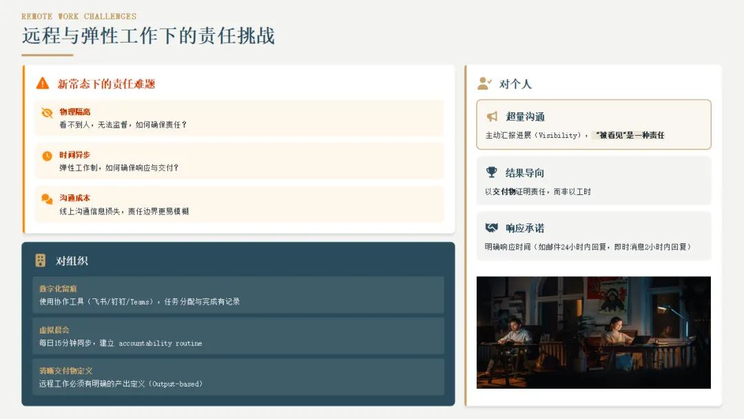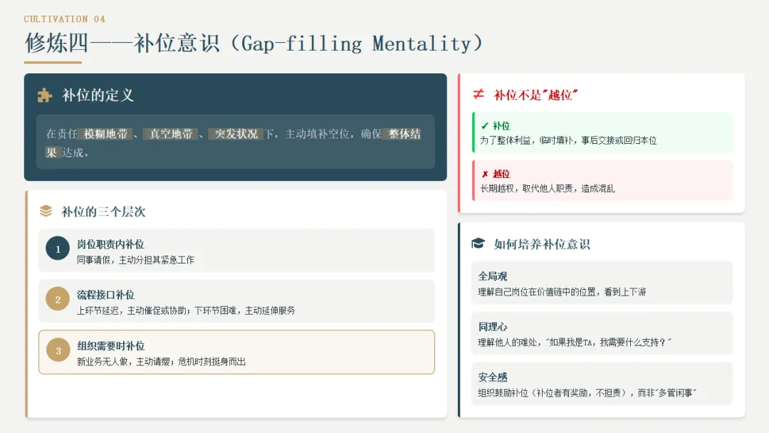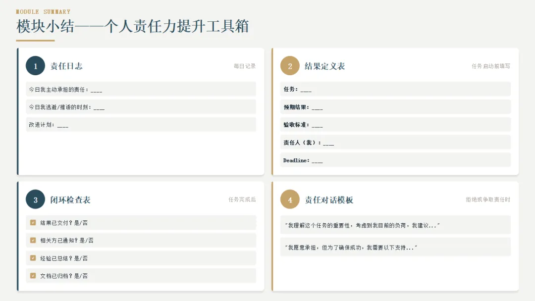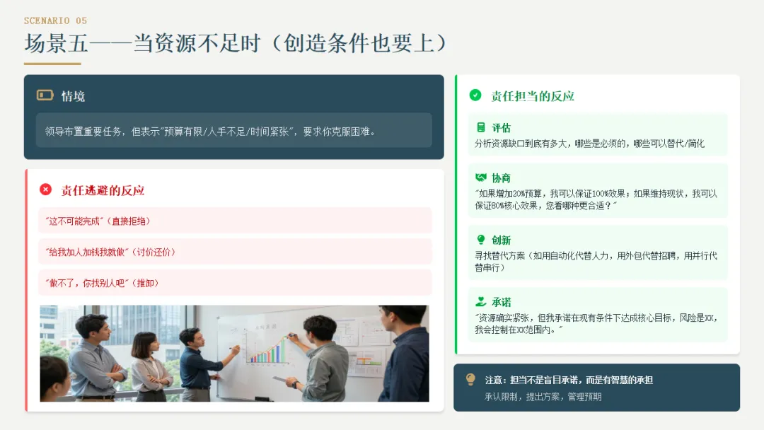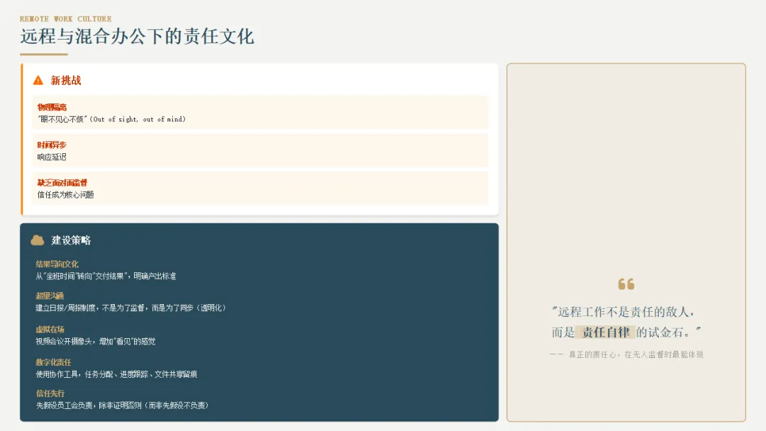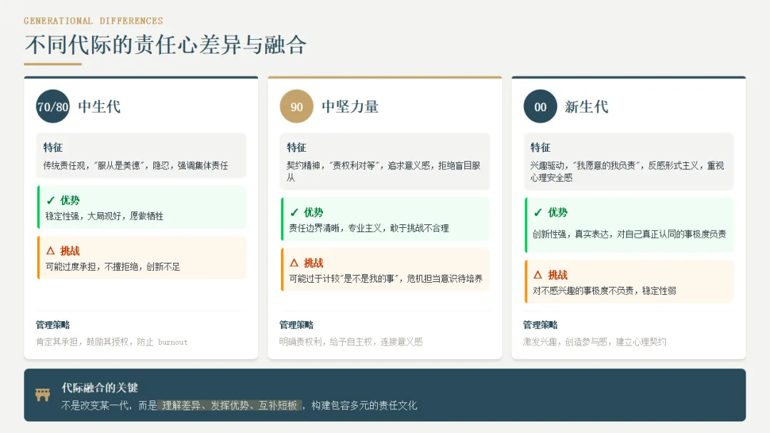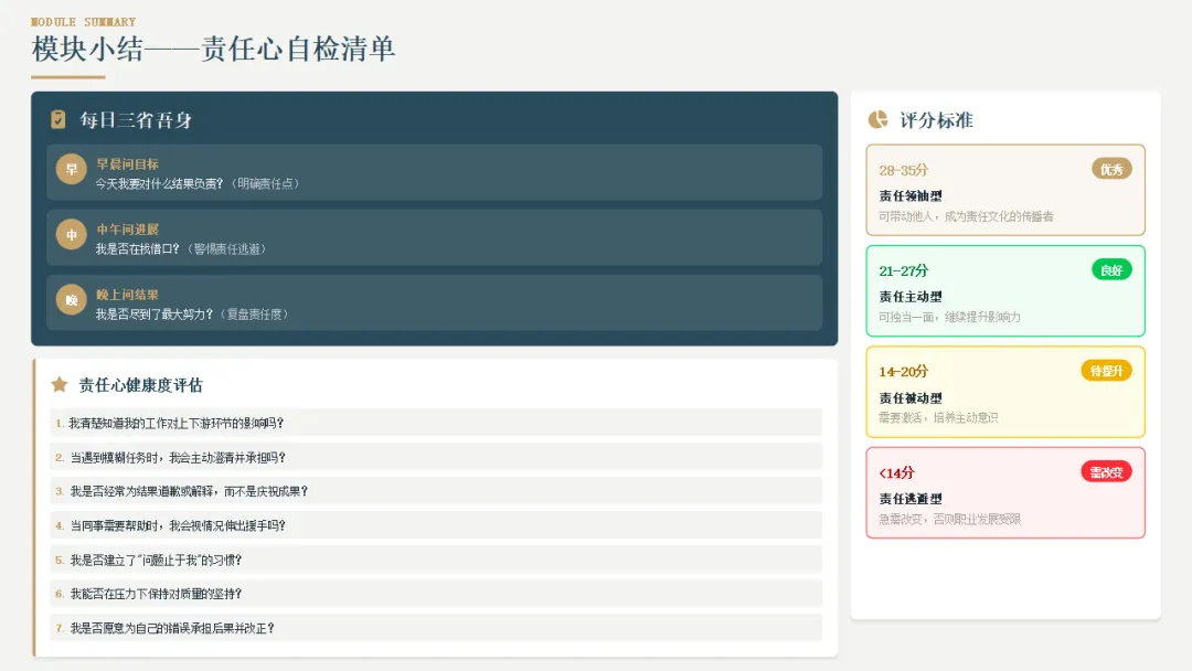 从企业视角看,责任心是最划算的投资。你多承担20%的责任,可能获得80%的成长机会,积累100%的信任资本。这是一个指数级的投资回报率。