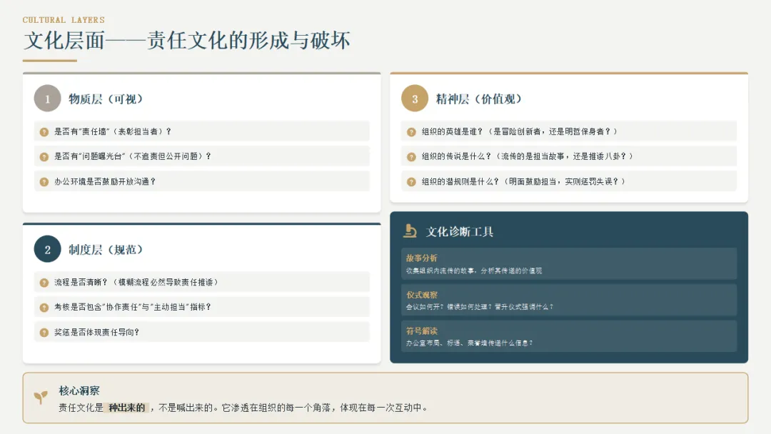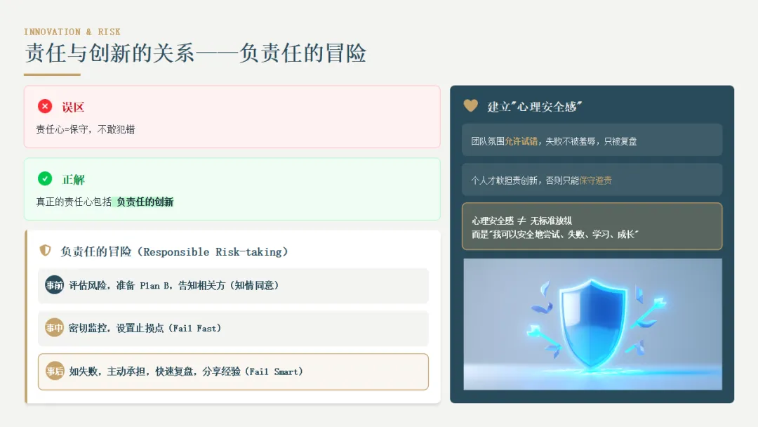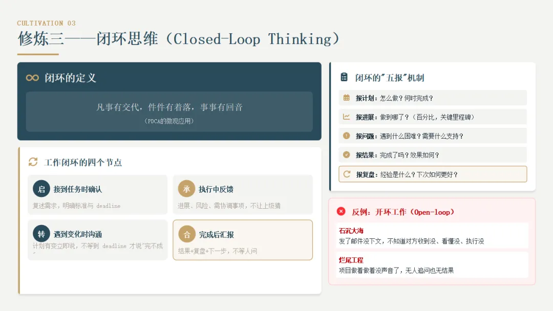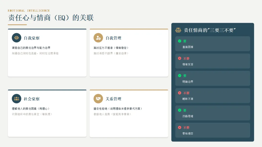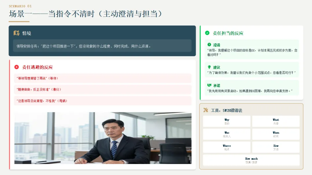 那是奴性,不是责任。真正的责任心是"建设性执行"——有疑问先沟通,执行中不找借口,出问题主动承担。