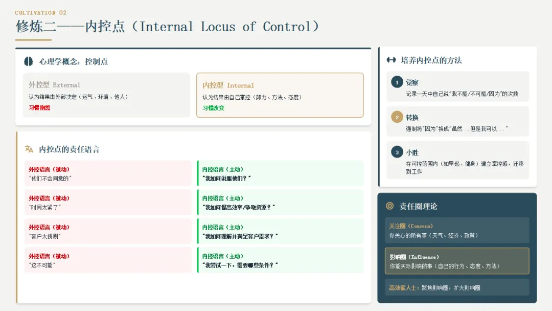 进阶路径是从受害者到被动者,再到承担者,最后到解决者。每一次语言的转变,都是思维模式的转变。