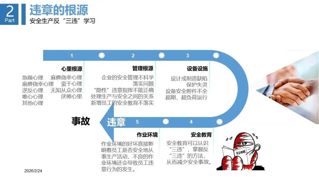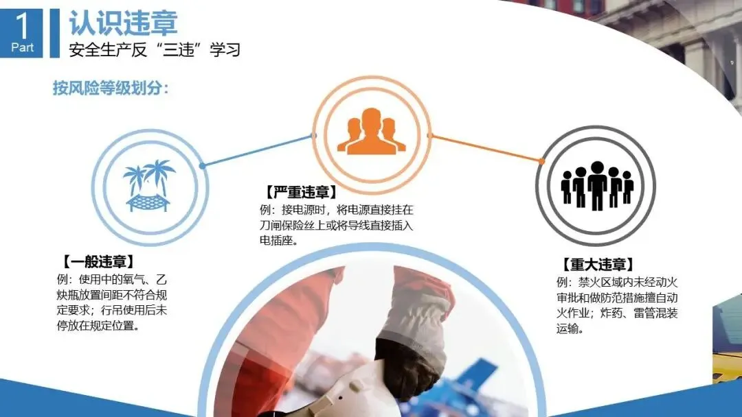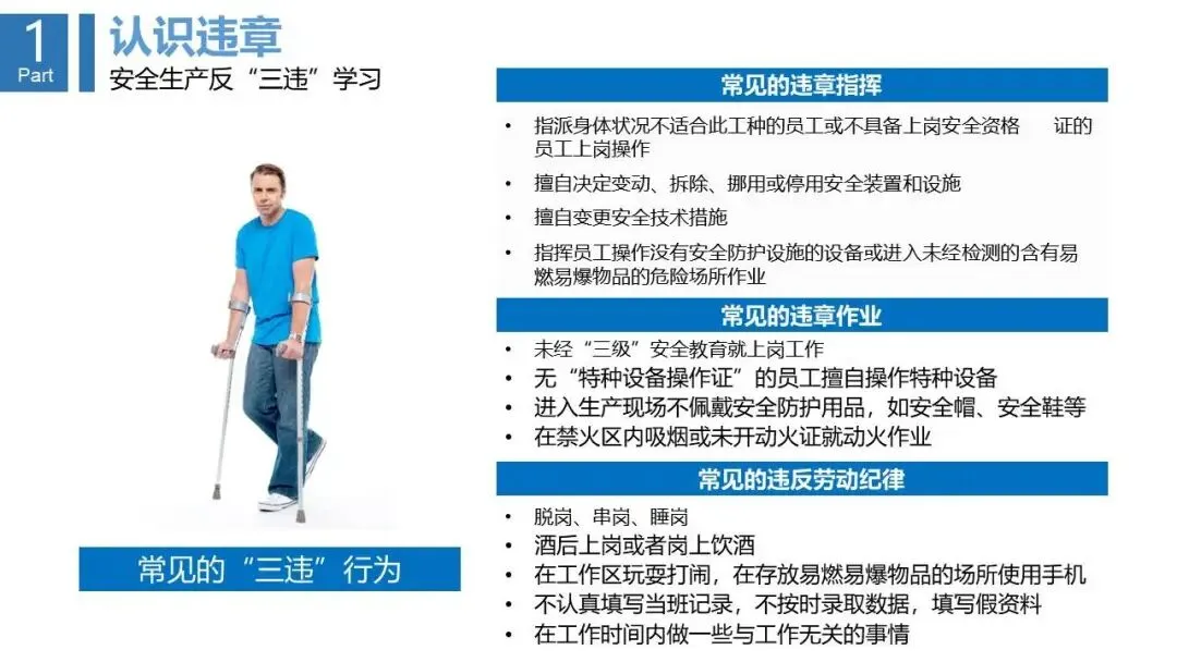 - 深入阐释“三违”(违章指挥、违章作业、违反劳动纪律)的定义、分类(一般/严重/重大)及成因(无知、无畏、习惯性违章)。