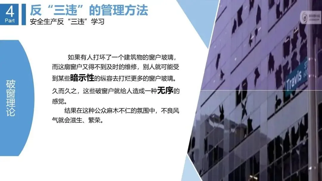 - 提出了基于“破窗理论”的管理方法,如班前“三查”、班中“四查”,以及教育培训、惩戒、沟通等综合手段。