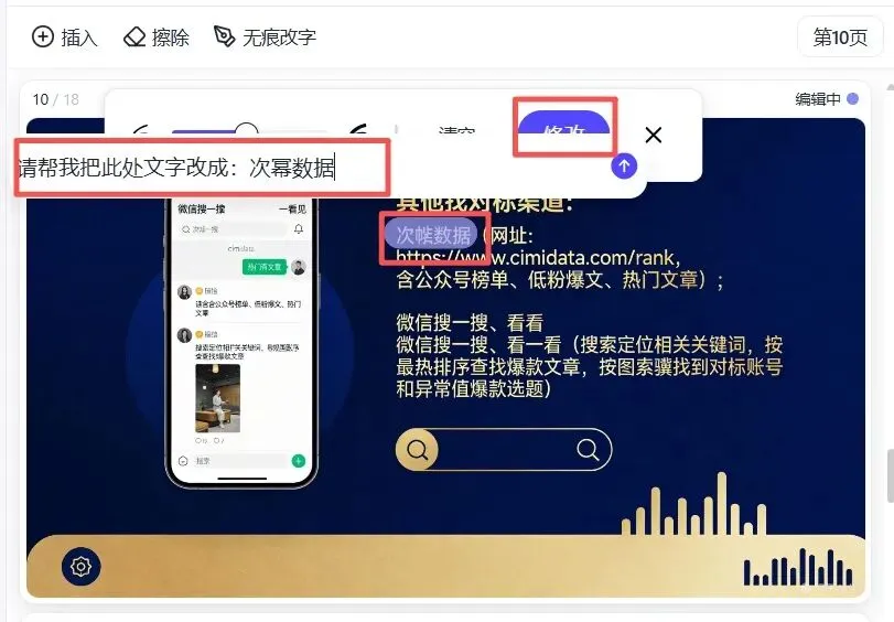 修改方便:一句话就能换风格、换配色,还能涂抹删除、改错字