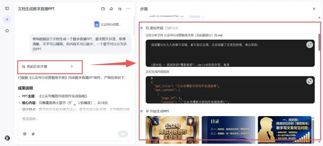 生成PPT的过程都有记录,随时可以打开查看进度。