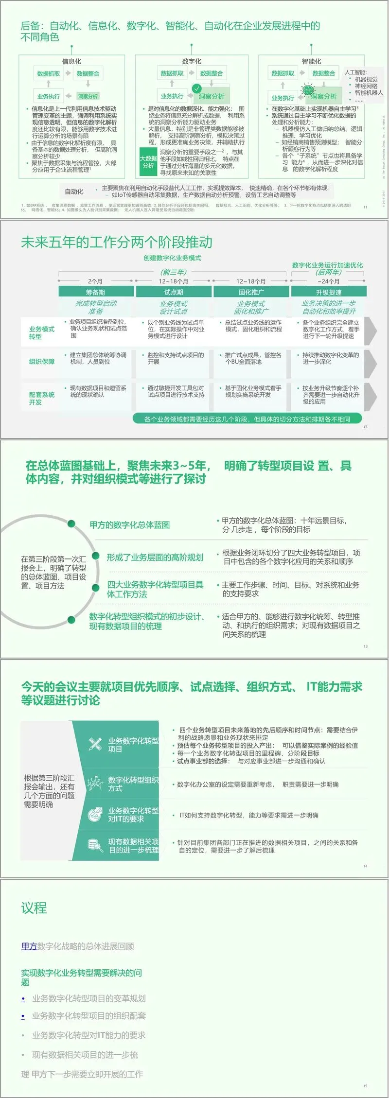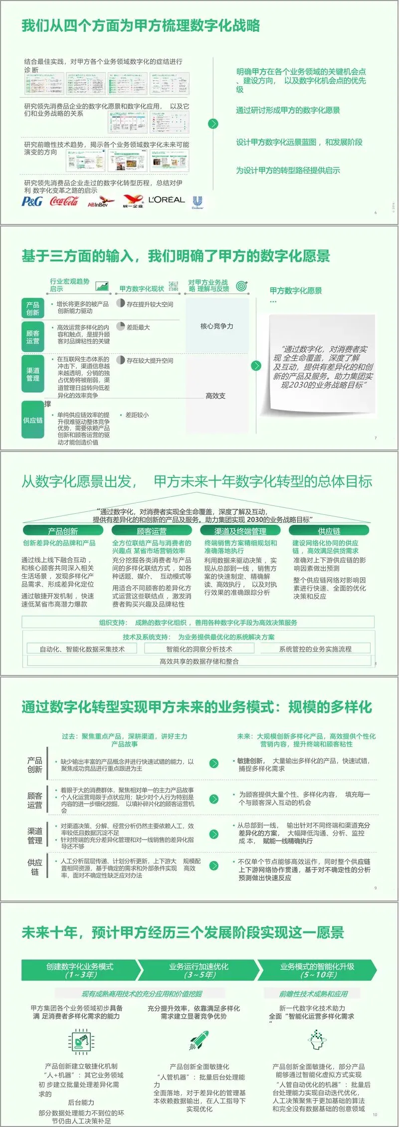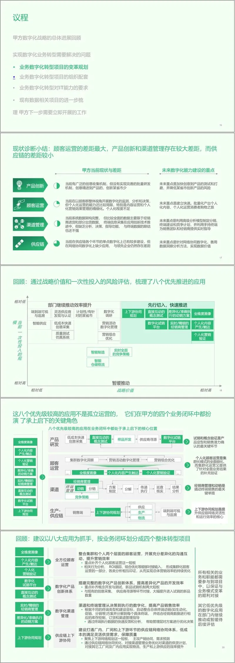 项目最后明确了下一步核心工作:推进顾客运营试点立项,成立数字化领导小组与办公室,梳理遗留系统与试点项目的对接机制,为转型落地奠定基础。整个规划既立足当前业务痛点,又着眼长远技术趋势,通过业务、技术、组织的协同发力,为企业数字化转型提供了可落地、可迭代的完整方案。