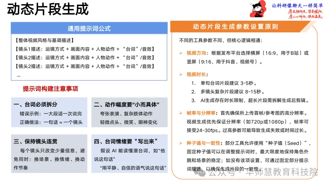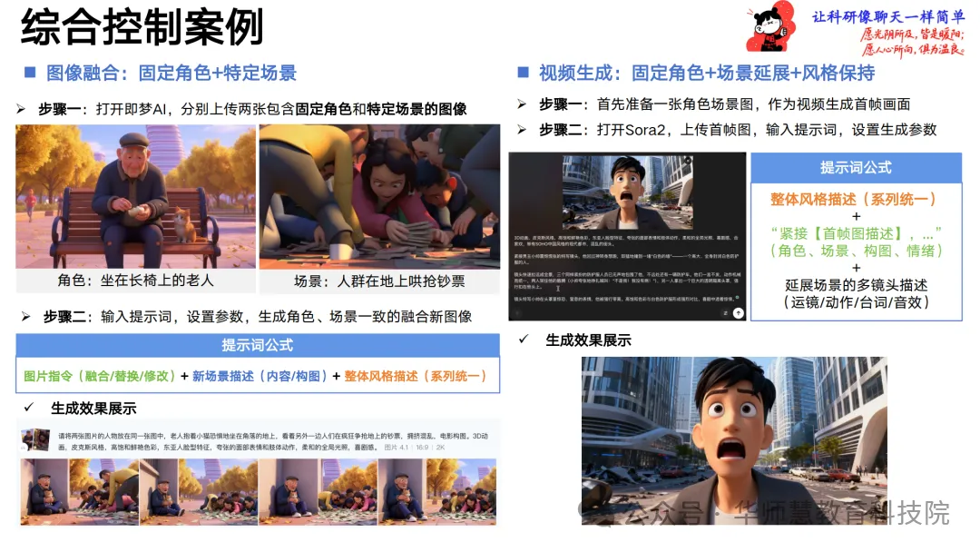 转场与连贯控制篇剖析首尾帧补间、视频延展、元素替换、运镜驱动、创意特效指令等AI转场原理与适用工具,提供关联性设计、提示词过渡性思维、分步生成与种子值锁定等实战技巧,辅以可灵AI的首尾帧与运镜驱动案例,帮助创作者实现空间转换、视角切换与复杂过渡的自然衔接。手册最后总结AI漫剧创作的范式革新优势——成本与效率革命、创意自由度提升、流程协作优化,并明确创作者必备的创意结构化、审美把控、流程管理、叙事节奏四大能力,提出“导演思维、敏捷迭代、资产思维”的人机协同策略与“具体优于抽象、参考优于空想、分解优于强求”的第一性原理,辅以避坑建议与个人进化路线,引导新手到精通的系统成长。附录汇总即梦AI、Sora 2、可灵AI等工具的精选提示词实例,覆盖场景替换、多人物融合、学术背景构建、风格迁移等高频需求,便于读者即学即用。