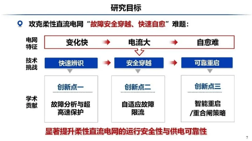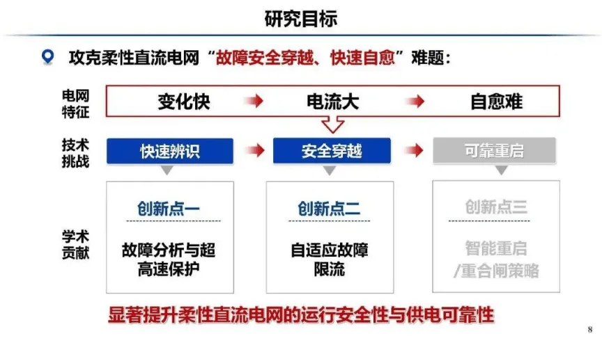 本汇报围绕柔性直流系统保护与故障穿越关键技术展开,由天津大学何佳伟副研究员分享,聚焦柔直电网故障防控的技术难题与创新突破,核心围绕故障分析与超高速保护、自适应故障限流两大方向展开研究,旨在解决柔直电网故障电流幅值高、变化快、隔离难等痛点,实现电网故障安全穿越与快速自愈。