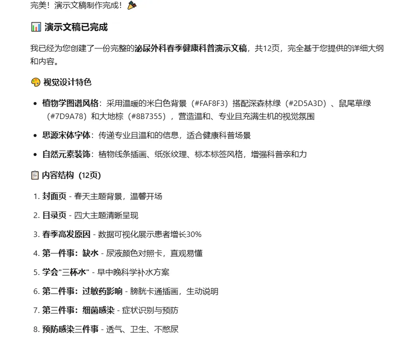 3️⃣ Kimi 一键生成(15分钟): 大纲丢进去,洗个碗的功夫,PPT 已经躺在我电脑桌面了。