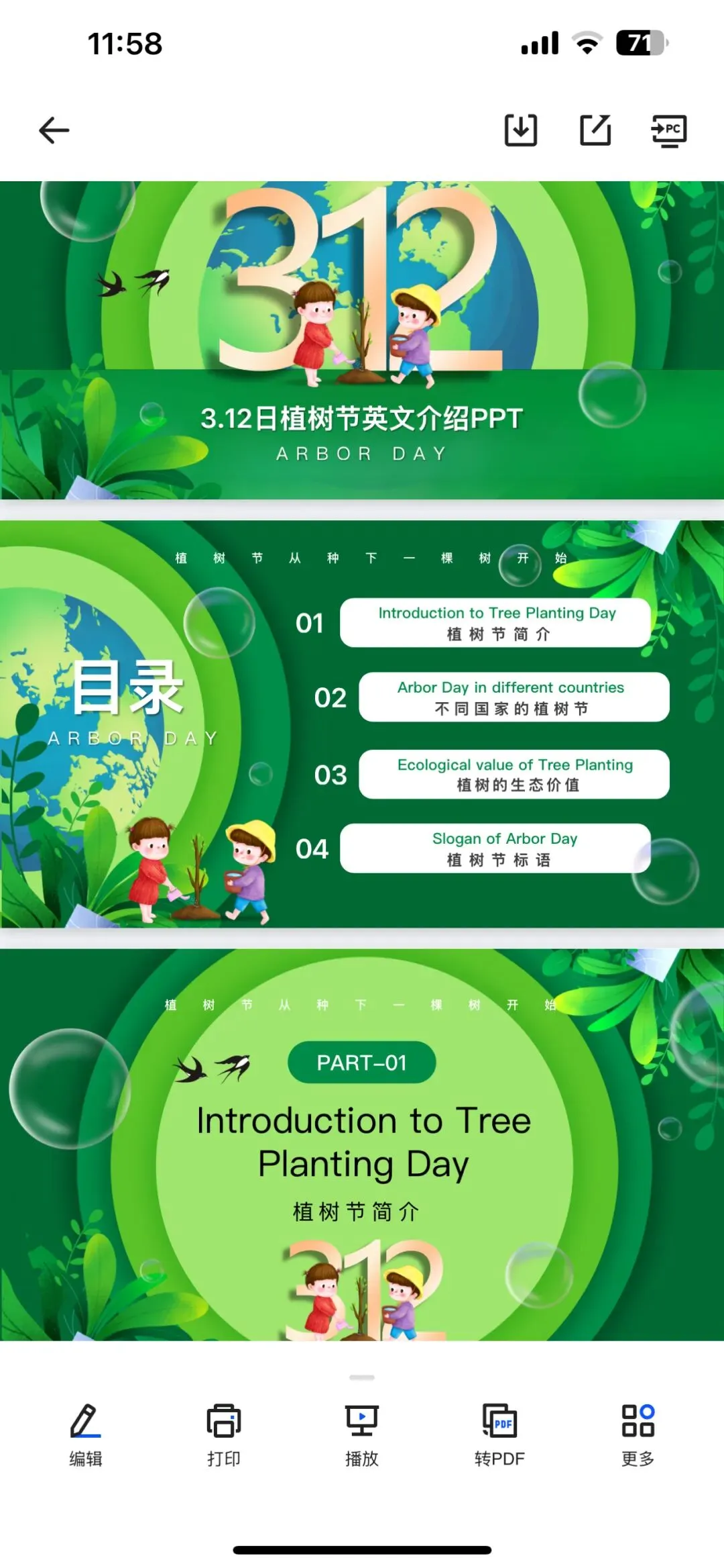 本文内容分享【植树节 PPT 模板】