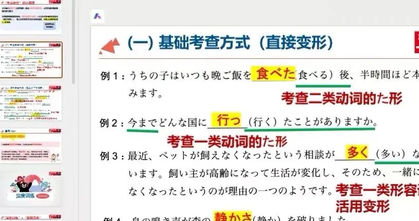 👌整理了单词考察、助词考察、句型考察、活用变形、指代词考察、汉字等重点题型内容和解题思路,适合日语学习自学或者教师授课、考前冲刺、日常复习用。内容包括单词考察、助词、句型、汉字专项、常用活用、助词、中高级句型、句子补充等,知识点分类清晰,讲解细致,适合自学和老师教学。
