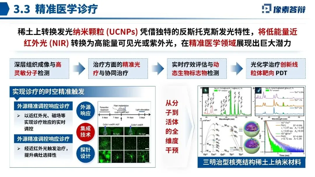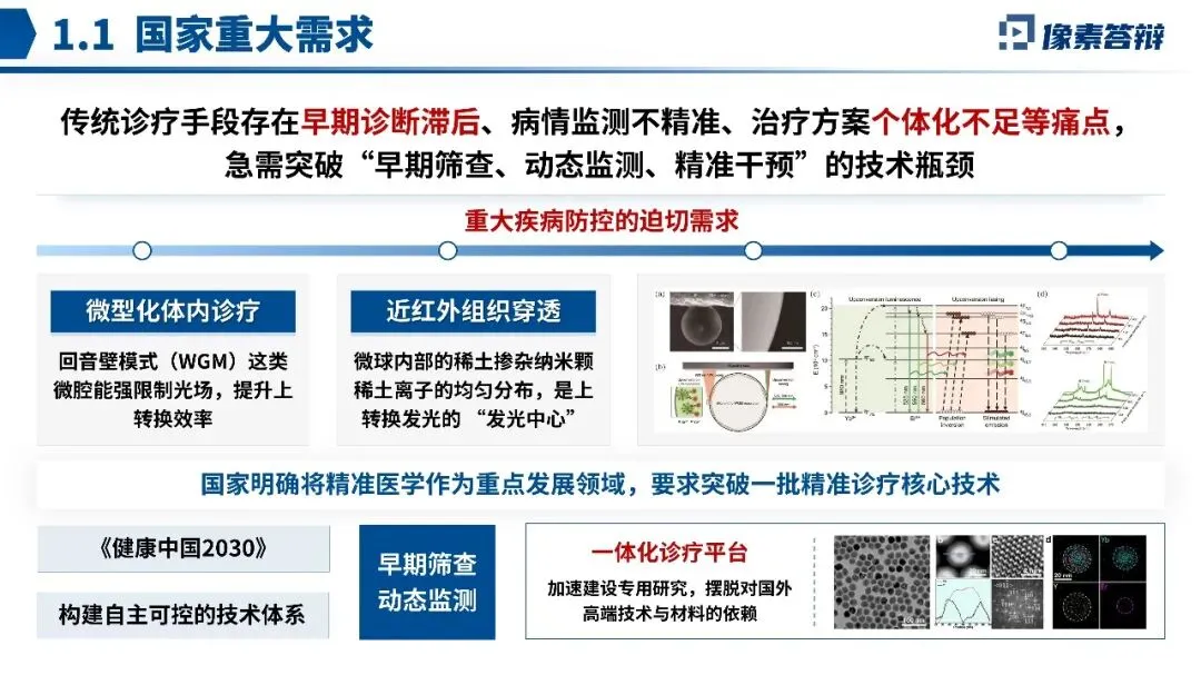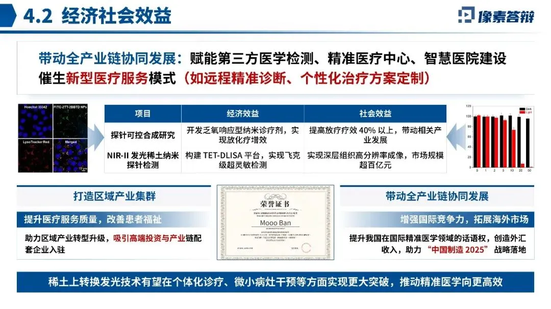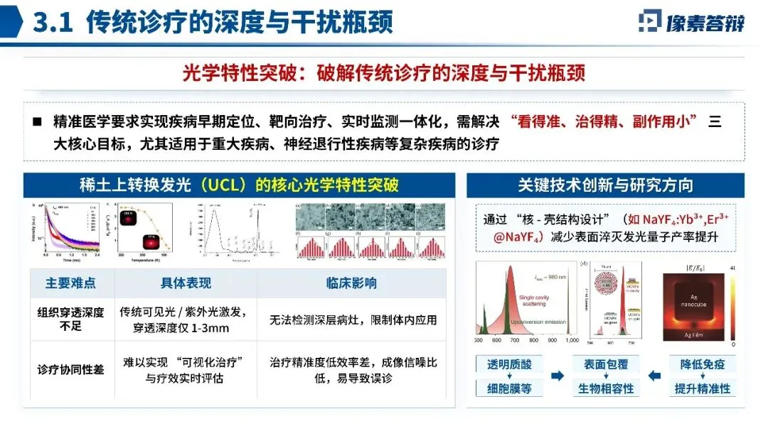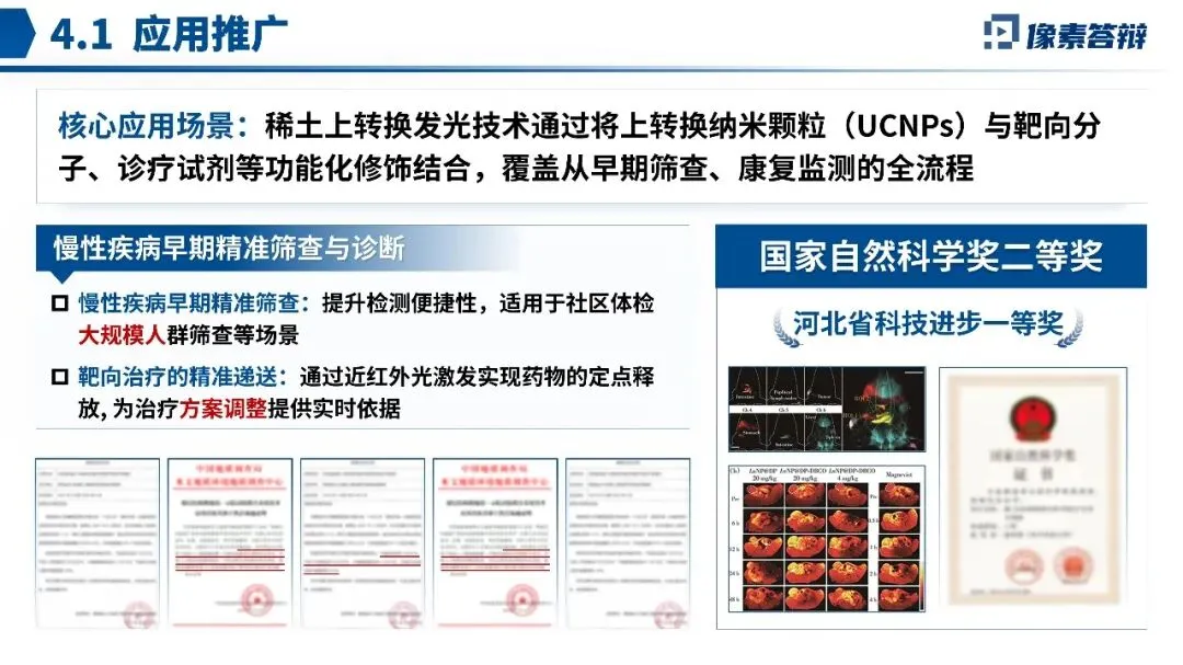 这份北京市科学技术奖答辩PPT,围绕稀土上转换发光技术在精准医学诊疗中的应用展开,其亮点在于将材料创新与临床需求紧密结合。解析如下: