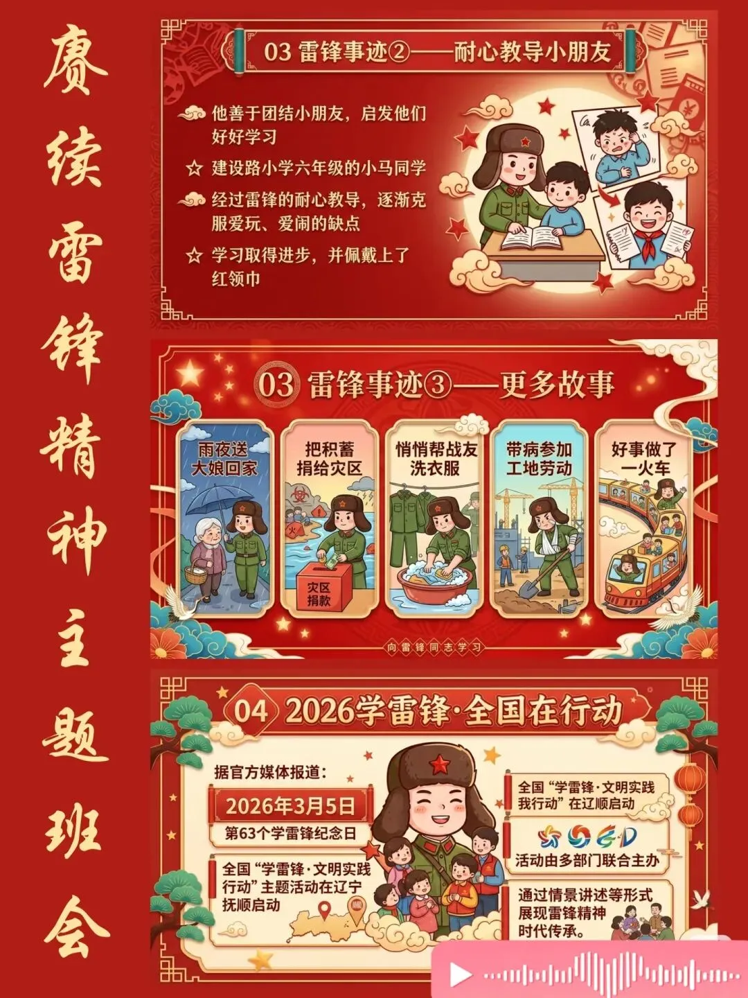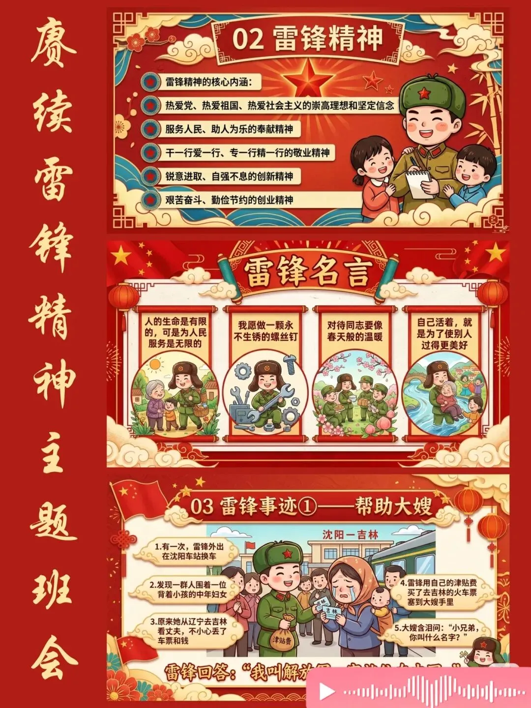 🏫 雷锋事迹:帮助大嫂、教导小朋友、好事一火车