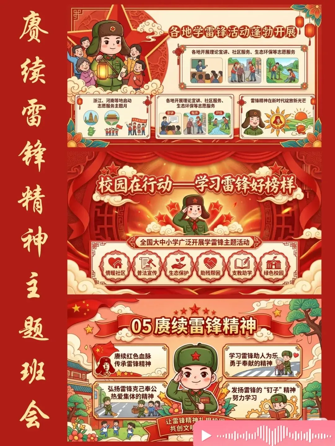 班主任老师们,学校要开展学雷锋主题活动,班会课怎么开?学生志愿服务怎么做?这份20页PPT一次讲清楚👇